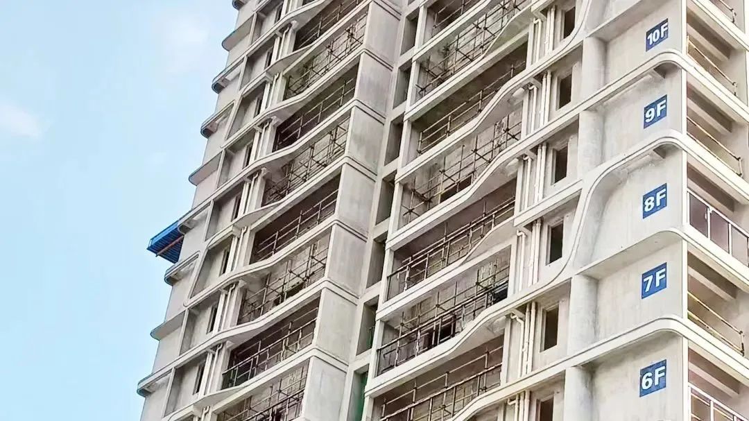 項目外線條為空間變化的圓弧結構,包含多層線條、圓弧斜柱、半圓弧立柱等,且6層循環變化、戶型奇偶變化疊加墻縮變。技術難度高,過程資源協調復雜。