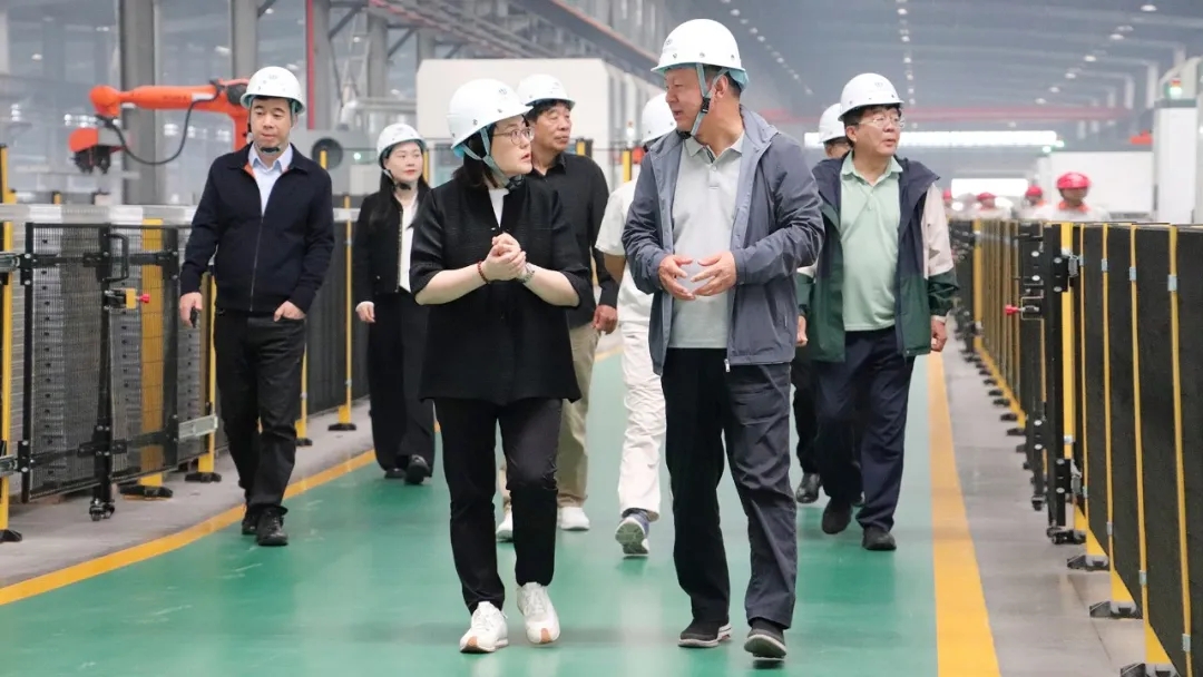 陸貽杰一行深入生產現場,實地考察鋁產業鏈智能制造生產線運營情況,詳細了解鑫政科技在技術創新、產品研發、智能制造、質量管控等領域情況。“來之前多有耳聞,親身體驗鑫政在鋁產業鏈上的布局后,更是直觀感受到其智能化和自動化程度均已達到行業領先水平”,陸貽杰提到。
