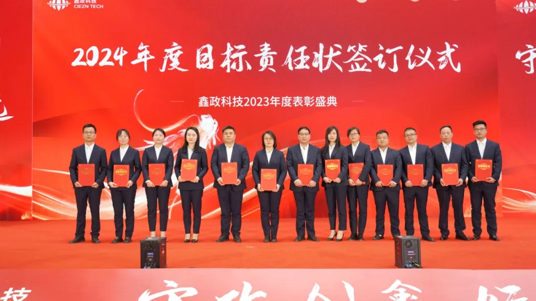集團(tuán)對2023年在工作崗位中涌現(xiàn)出來的優(yōu)秀個人、團(tuán)隊(duì)和公司進(jìn)行表彰,對做出卓越業(yè)績和貢獻(xiàn)的管理干部頒發(fā)證書。各中心(辦)、分子公司負(fù)責(zé)人簽訂2024年度目標(biāo)責(zé)任狀。