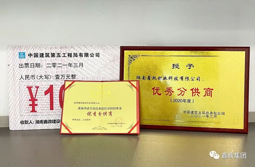瀏覽次數(shù):933喜訊連連捷報(bào)傳。近日,在中建五局總承包公司2021年分包(供)商答謝會暨優(yōu)秀分包(供)商表彰會上,集團(tuán)下屬子公司湖南鑫政鋁業(yè)科技有限公司與湖南鑫政建設(shè)有限公司分別喜獲2020年度“優(yōu)秀分供商”與“良好分包商”獎(jiǎng)項(xiàng)。