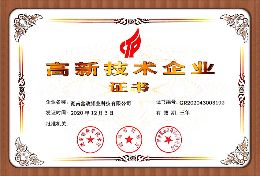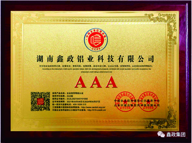 瀏覽次數:950近日,鑫政集團子公司鑫政鋁業喜報頻傳,再獲殊榮。根據湖南省2020年高新技術企業認定規定,經專家評審、權威公示等程序,鑫政鋁業憑借產品研發、科研人才培養、質量把控等方面的出色表現,榮獲“高新技術企業”榮譽稱號。同時,經過中國企業信用誠信公示服務平臺的嚴格審核,該公司榮獲“AAA級企業信用等級”證書。